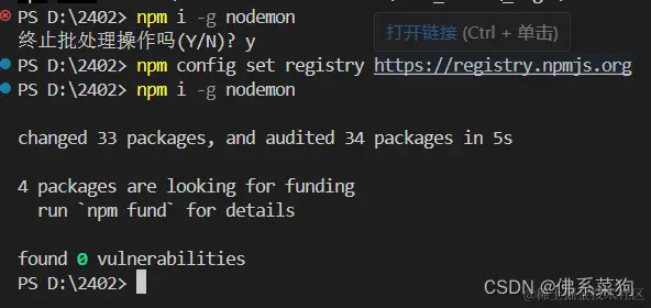 3.确认修改后,再次尝试运行 nodemon 命令,应该不再出现相同的权限错误