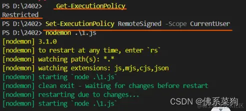 三、运行报错 nodemon : 无法加载文件 D:\ProgramFiles\nodejs\node_global\nodemon.ps1,因为在此系统上禁止运行脚本
