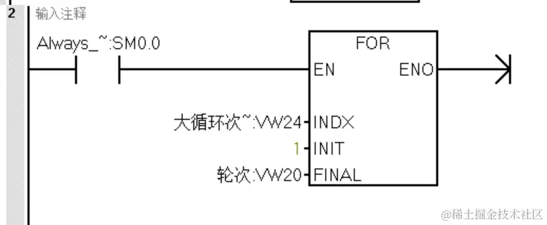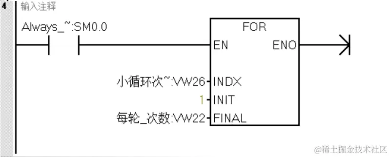 使用外循环FOR,循环次数存储在VW24中,循环的轮次次数为4(VW20)