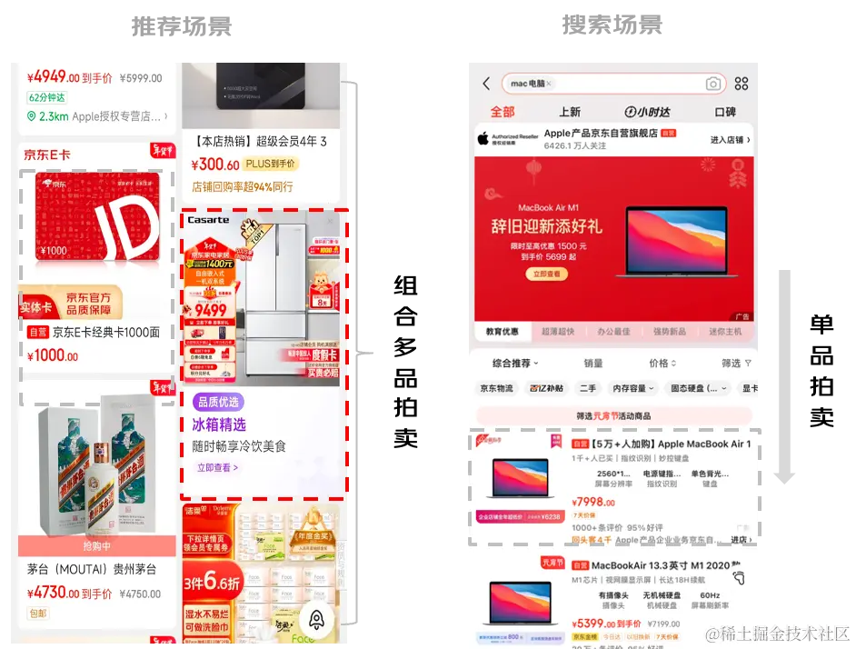 随着互联网广告的飞速发展,流量增长迅速,用户规模及行为都更加庞大且丰富,广告物料也从原来简单的商品展示,拓展到了包含聚合页、活动、店铺、视频以及直播等多种多样的物料类型,此外,广告主的目标和表达方式也从原先的手动出价,转变为了由平台代理的,带有预算和成本控制的智能出价。因此,广告排序机制的设计也遇到了许多新的挑战。结合京东业务场景,我们总结了以下三个问题与大家分享: