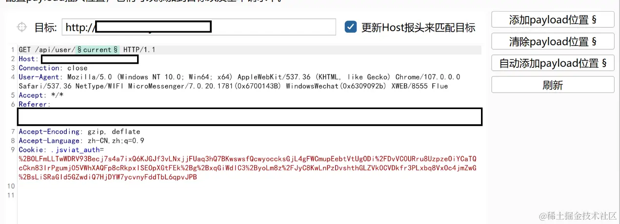直接寻找get请求放在Intruder模块进行接口fuzz(/api/user/下)