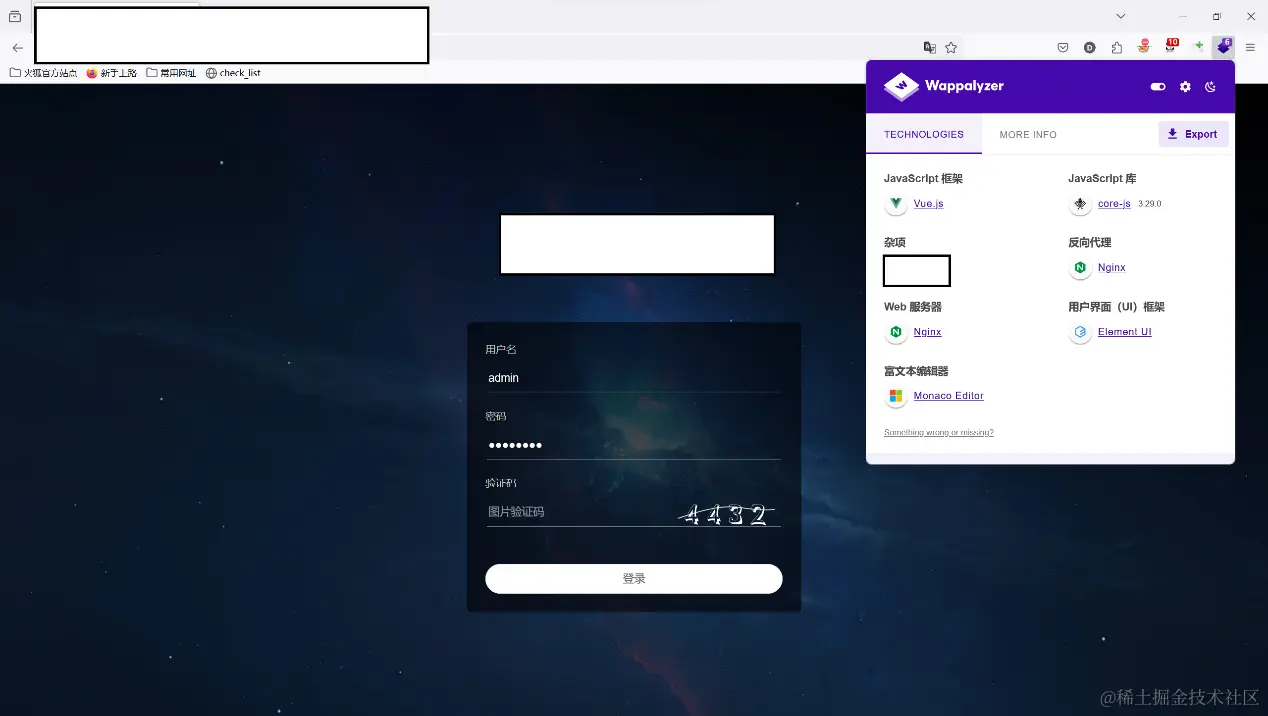 5.弱口令尝试失败,但是发现为Nginx搭建的(使用Wappalyer扩展)