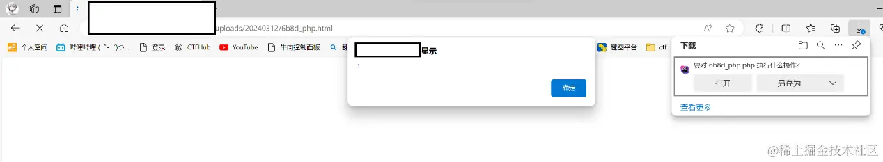 4.放在浏览器发现不解析,直接下载,只能尝试上传xss