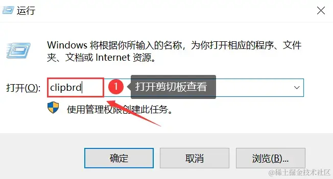 步骤2:在运行窗口中输入 【clipbrd】,然后点击【确定】;