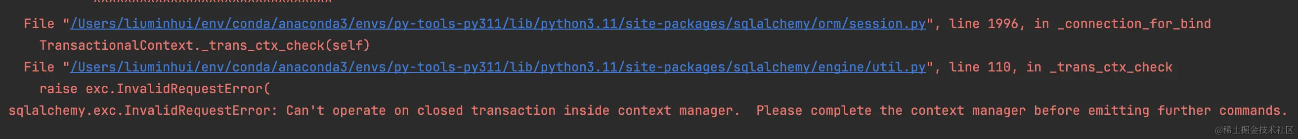 sqlalchemy.exc.InvalidRequestError:无法在上下文管理器内的已关闭事务上进行操作。 请先完成上下文管理器,然后再发出进一步的命令。