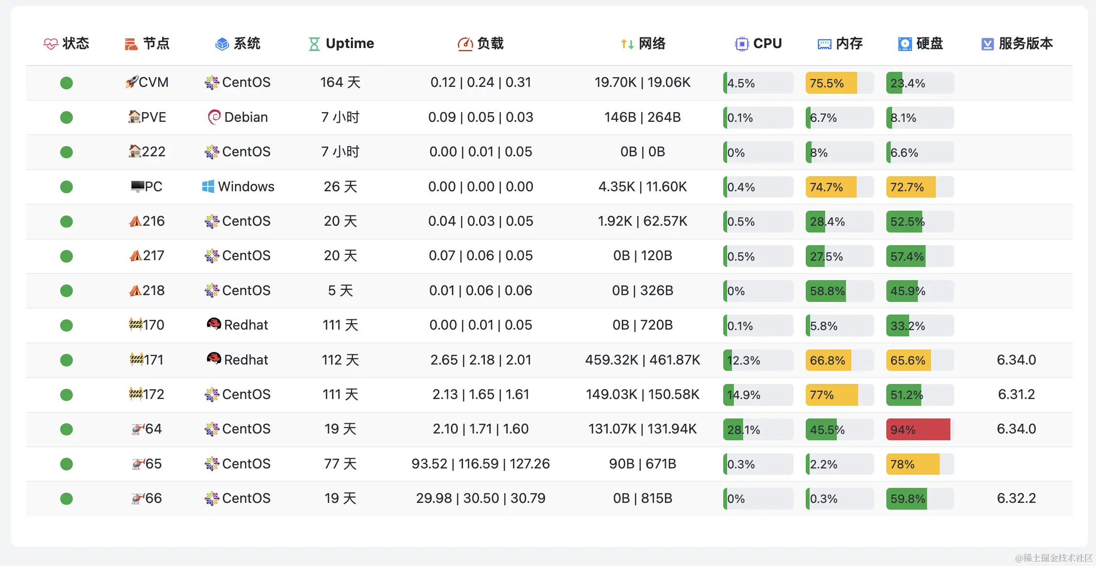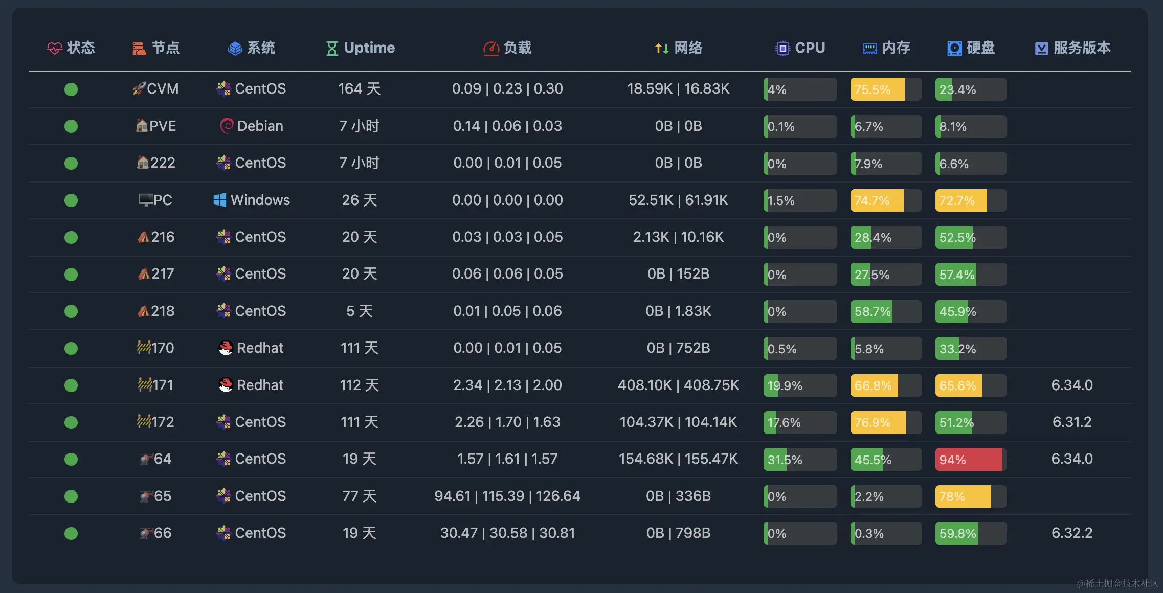 最近发现家里的 mini 主机上的虚拟机频繁重启,有时候宿主机也会重启,但是由于虚拟机都是设置的开机自动启动,所以重启后自己不去查看 Uptime 的话还不一定知道虚拟机重启过。基于这个事情,我打算开发一套简单的服务器监控应用到自己的网站,目前已经上线一段时间了,现在说一下这个服务的开发过程。