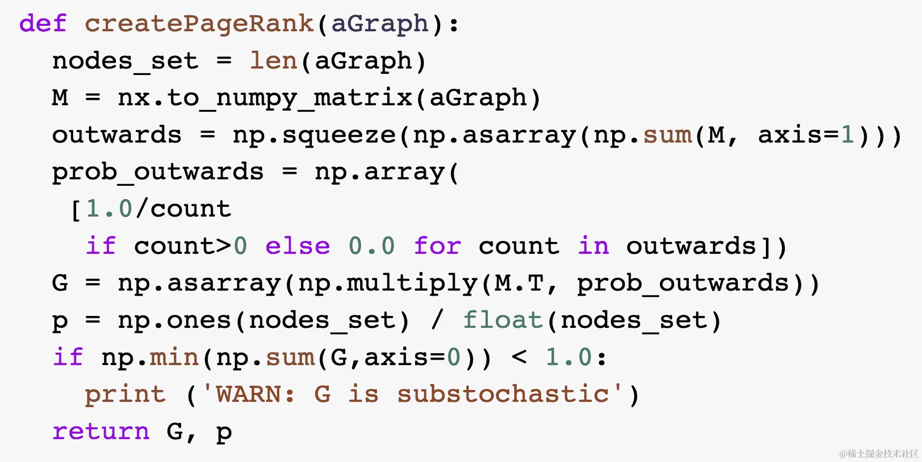 请注意,这个函数将返回G,它代表我们图的转换矩阵。