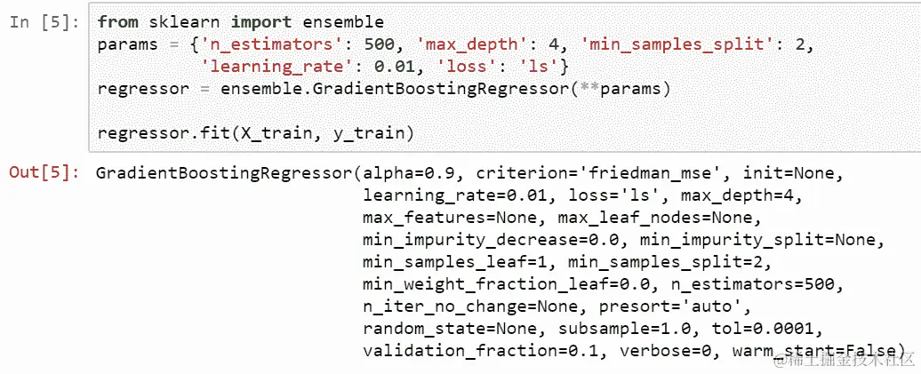 - 首先,我们使用梯度提升回归算法来训练模型: