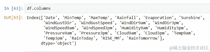 x来代表输入特征。我们将在特征列表中删除Date字段,因为在预测的情境下它没有用处。我们还将删除RainTomorrow标签: