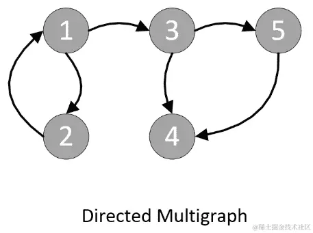 如果多重图中的节点之间存在方向关系,则称为有向多重图: