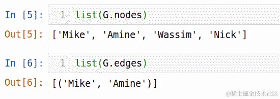 请注意,如果我们添加一条边,这也会导致添加相关的顶点,如果它们尚不存在,如下所示: