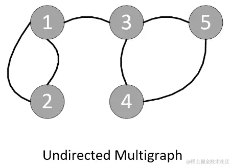 有时,节点之间有多种关系。在这种情况下,可以有多条边连接相同的两个节点。这种图称为多重图,在同一节点上允许多条平行边。我们必须明确指出一个特定的图是否是多重图。平行边可以表示节点之间的不同类型的关系。