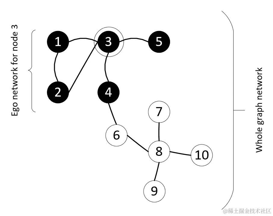 请注意,egonet 代表一度邻域。这个概念可以扩展到 n 度邻域,包括所有 n 跳离感兴趣的顶点的顶点。