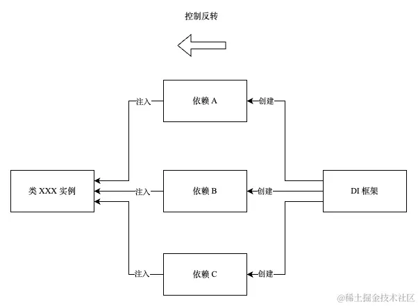 从上面的伪代码可以看到, IoC 负责创建对象实例,首先扫描类的依赖,递归生成依赖实例,然后注入到待创建的对象实例中,再将对象实例返回。