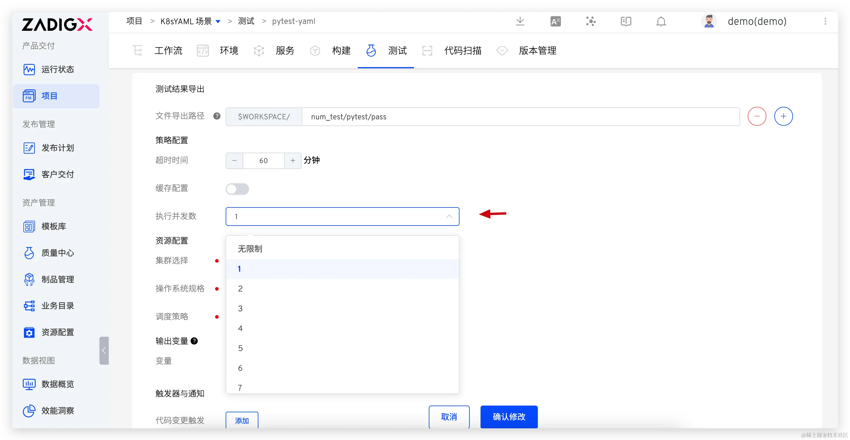 支持并发配置:代码扫描和测试任务执行的并发数量可配置,允许用户根据任务的紧急程度和资源占用情况优化执行效率。
