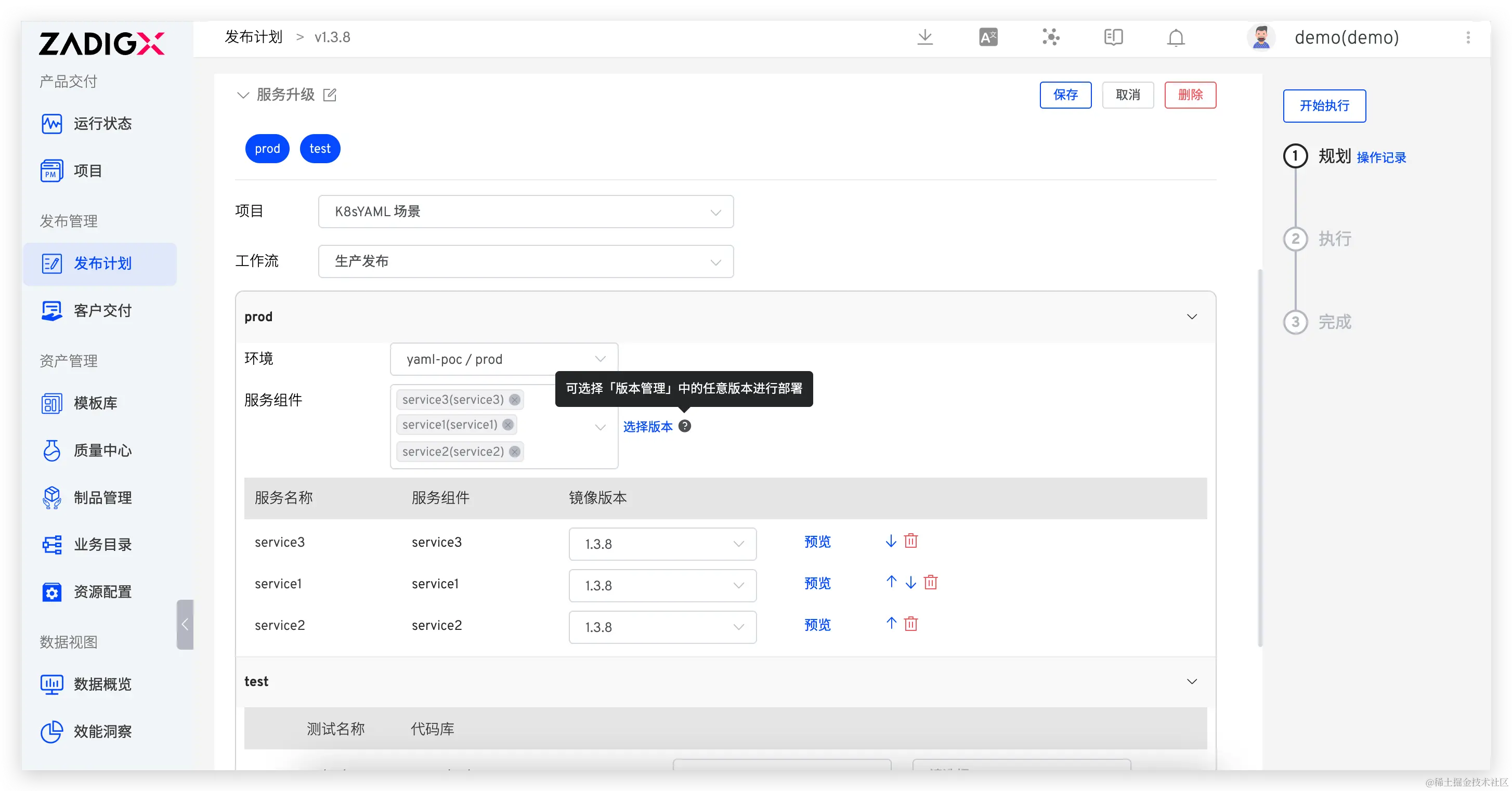 发布计划功能增强:新增了选择特定版本进行发布的功能,使得发布过程更加精确和可控;同时实例化部署 Helm Chart。