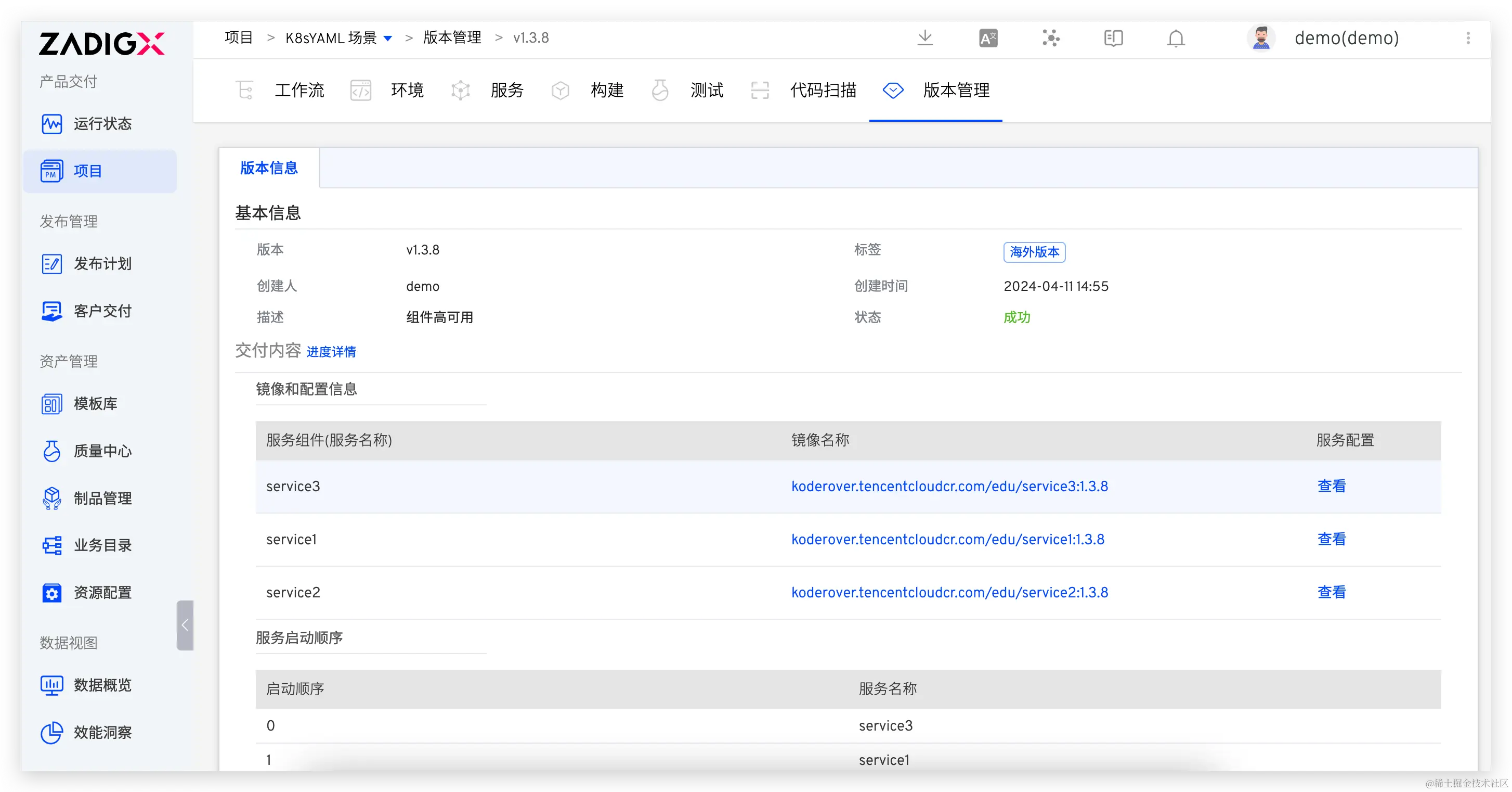 使用版本中服务和镜像发布