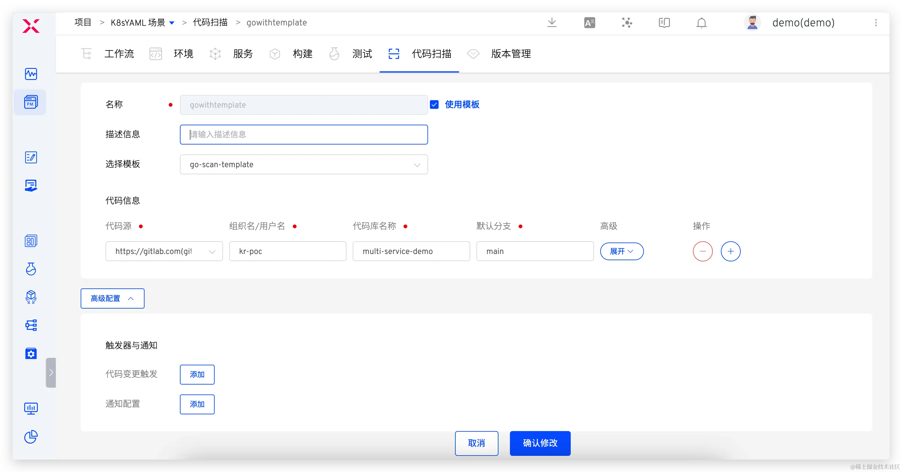 代码扫描模板配置