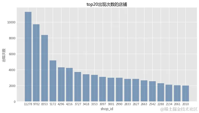 一共有3959家店铺,店铺shop_id6597981382309269962出现11278次