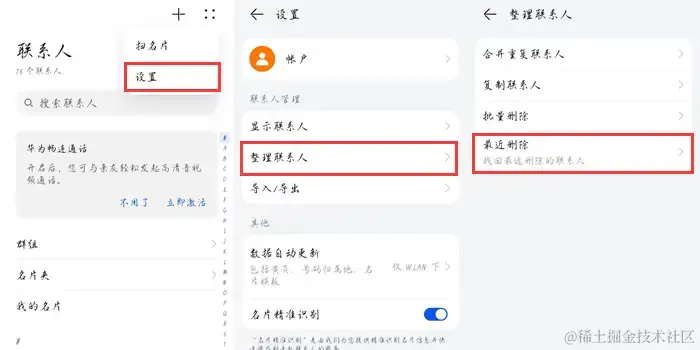 方法二:通过最近删除功能恢复通讯录