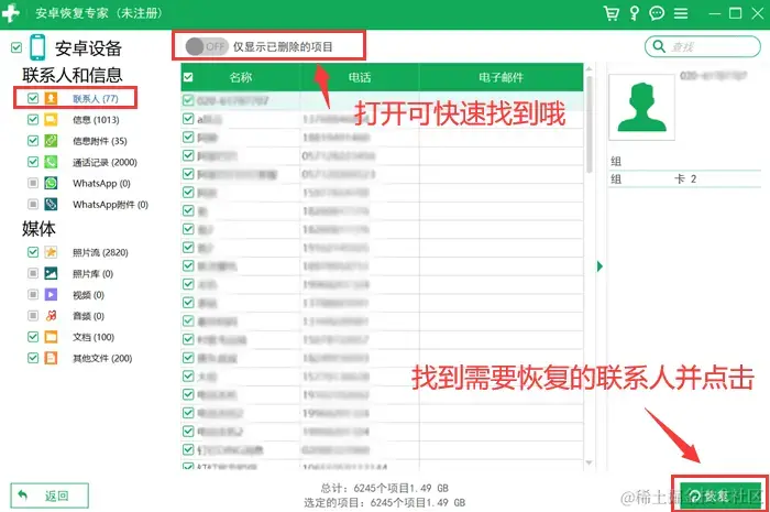 方法三:通过专业的数据恢复软件恢复通讯录