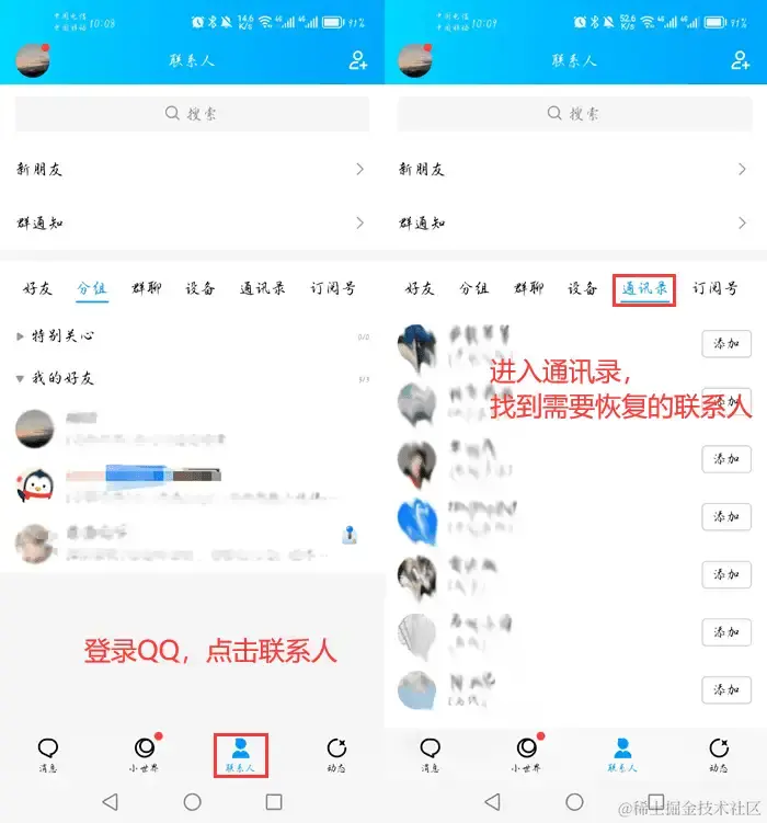 方法一:通过QQ恢复通讯录