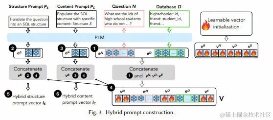 第二阶段,称之为内容阶段,它指导PLM用具体的值(包括SQL标识符,如表名、列名和常量值)填充在生成的SQL结构中的占位符。