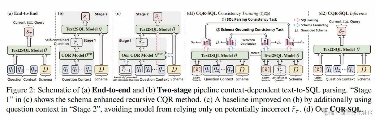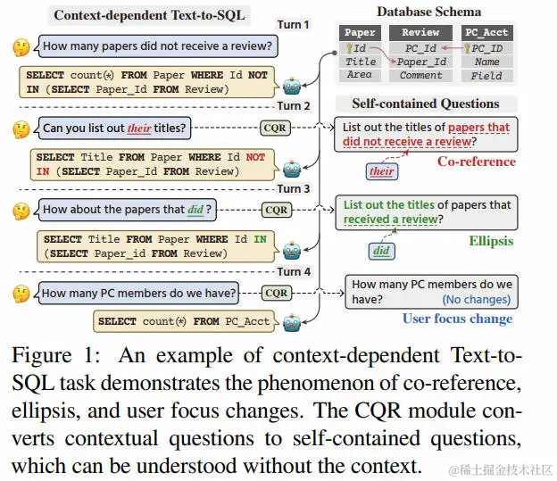 上下文依赖的文本到SQL的任务是将多轮问题翻译成与数据库相关的SQL查询。现有的方法通常侧重于充分利用历史上下文或先前预测的SQL进行当前的SQL解析,却忽视了显式理解模式和对话依赖性,如共指、省略和用户关注点的变化。在本文中,提出了CQR-SQL,它利用辅助性的对话问题重构(CQR)学习来显式地利用模式并解耦多轮SQL解析中的上下文依赖。具体来说,首先提出了一种模式增强的递归CQR方法,以生成与领域相关的、自包含的问题。其次,训练CQR-SQL模型,通过模式接地一致性任务和树结构SQL解析一致性任务,将多轮问题和辅助性的自包含问题的语义映射到相同的潜在空间,从而通过充分理解上下文来增强SQL解析的能力。在撰写本文时,的CQR-SQL在两个上下文依赖的文本到SQL基准测试SPARC和COSQL上取得了新的最先进结果。