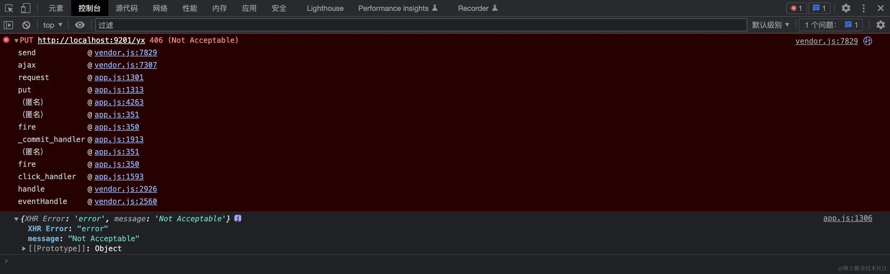 在通过elasticsearch-head创建索引时,点击新建索引窗口的【OK】按钮,没有任何响应,无法在页面新建索引。针对此问题,打开浏览器控制台,提示“Not Acceptable”错误。