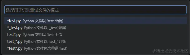 - 下一个对话框中,选择用于标识测试文件的文件通配符模式,本例中为 \“*test.p\”。