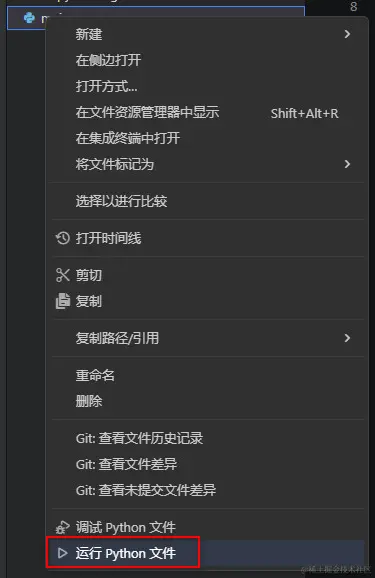 - 在资源管理器中右键单击 Python 文件,并从上下文菜单中选择“运行 Python 文件”。