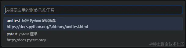 - 在弹出的对话框中,选择您想要启用集成的测试框架,在本例中是 “unittest”。