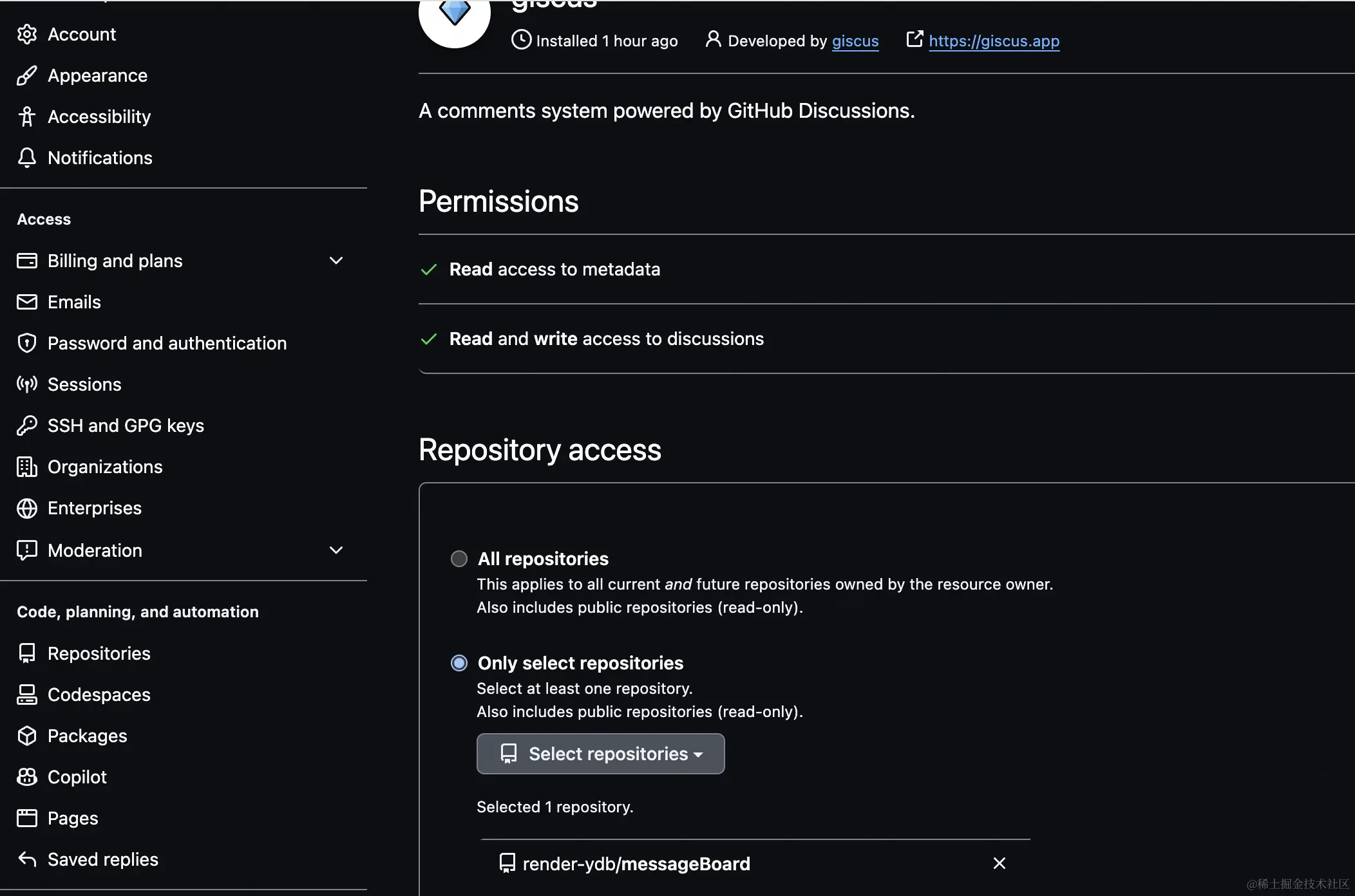 安装giscus