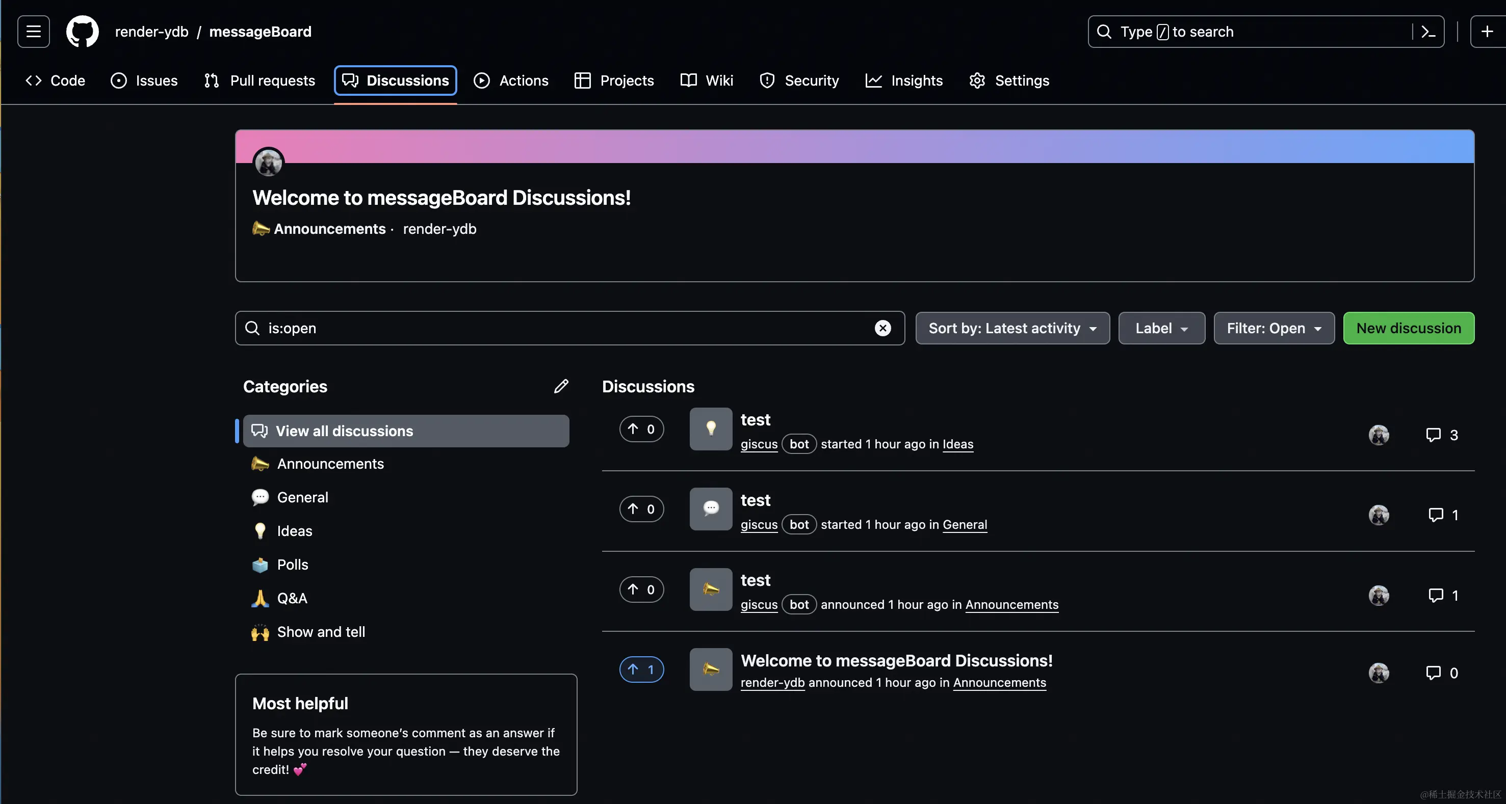 开启Discussions功能