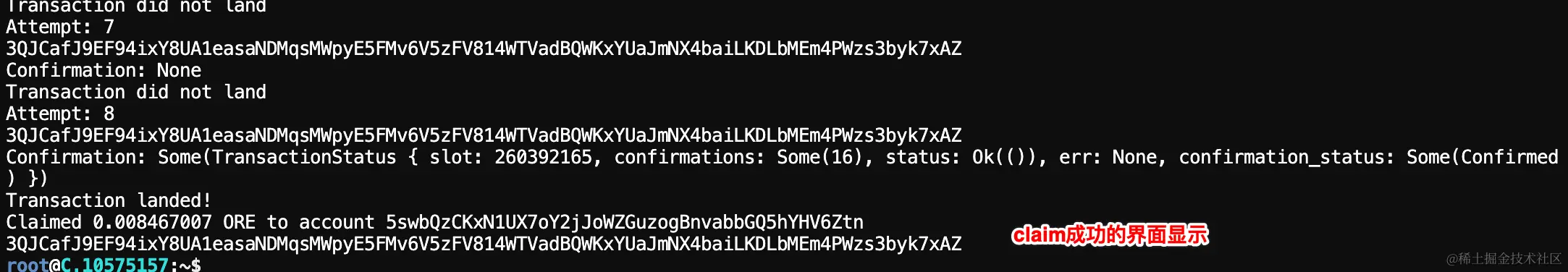 claim成功的话,会显示“Transaction landed!