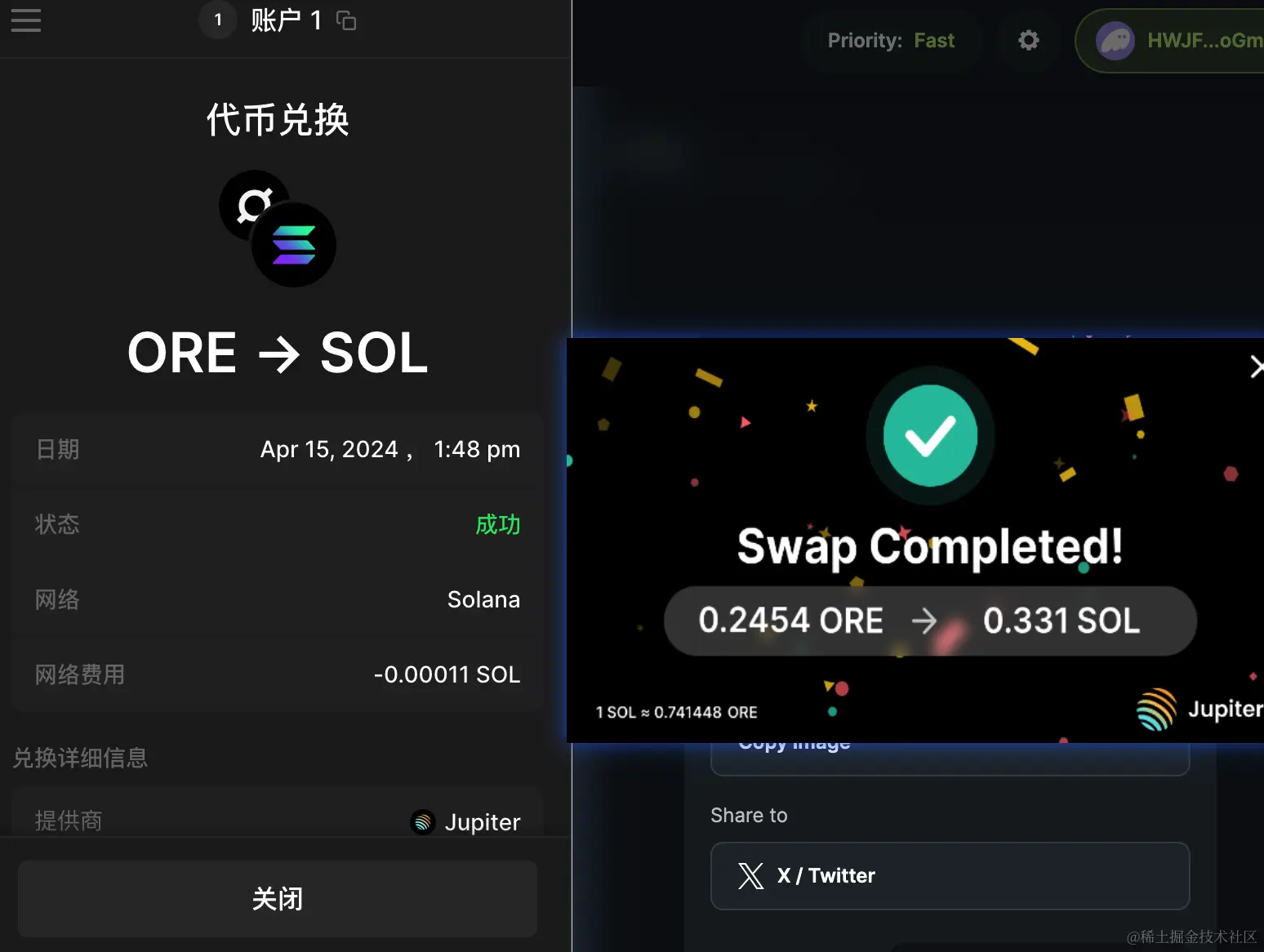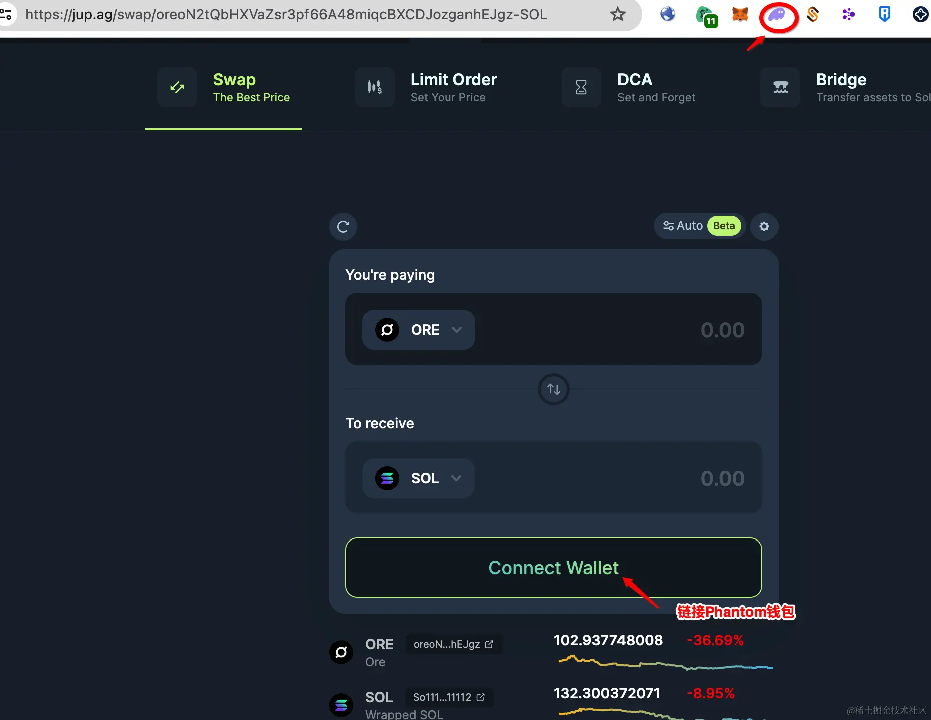 您随时可以将ORE及时卖掉换成SOL,地址jup.ag/ 或者birdeye.so,连接Phantom钱包插件(导入你挖ore的wallet),就可以直接实时兑换成SOL币。