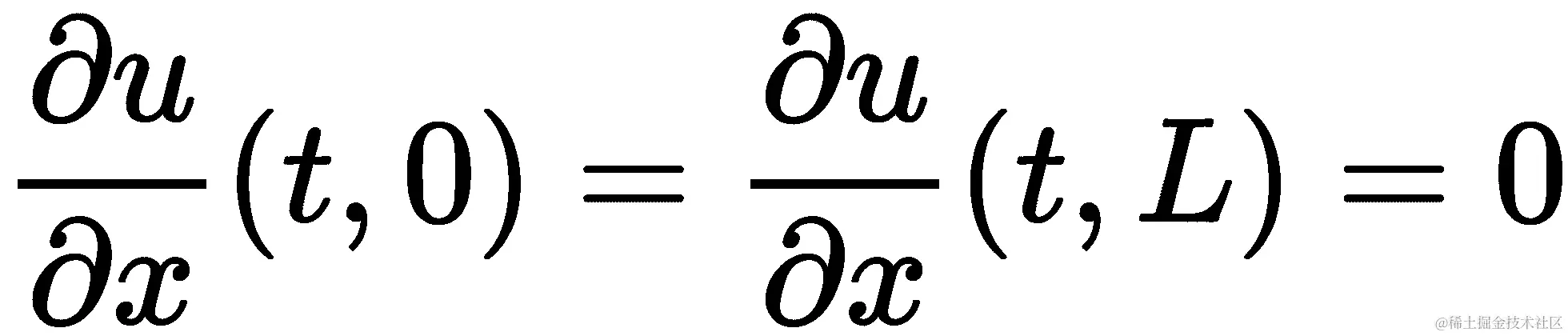 我们在这个例子中给出的边界条件代表了杆的两端保持在恒定温度为 0。这种边界条件有时被称为Dirichlet边界条件。还有Neumann边界条件,其中函数u的导数在边界处给定。例如,我们可能已经给出了边界条件