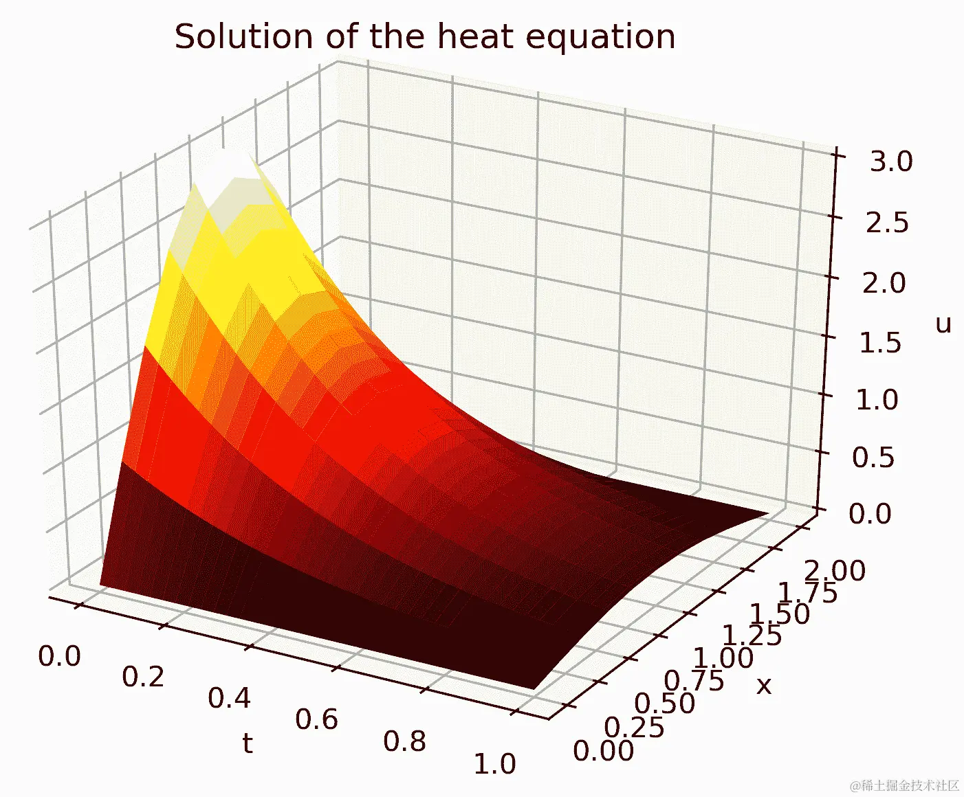 对于涉及偏微分方程的更复杂问题,可能更适合使用有限元求解器。有限元方法使用比我们在本篇中看到的有限差分方法更复杂的方法来计算解决方案,通常比偏微分方程更灵活。然而,这需要更多依赖更高级数学理论的设置。另一方面,有一个用于使用有限元方法解决偏微分方程的 Python 包,如 FEniCS (fenicsproject.org)。使用 FEniCS 等包的优势在于它们通常针对性能进行了调整,这在解决复杂问题时对高精度至关重要。