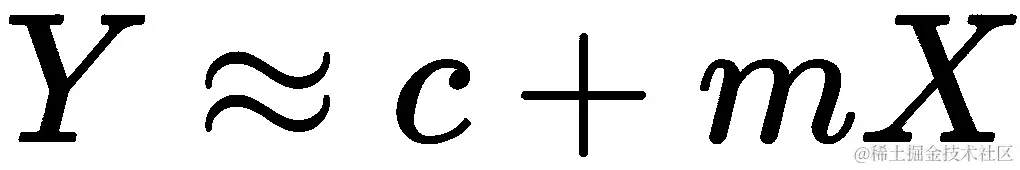 在这里,c是直线与y轴相交的值,通常称为y截距,m是直线的斜率。在线性回归的背景下,我们试图找到响应变量Y和预测变量X之间的关系,使其形式为一条直线,使以下情况发生:
