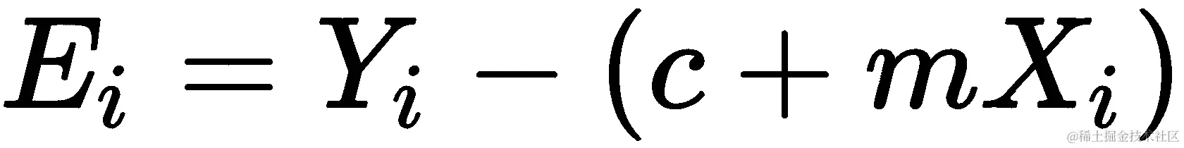 这里,E是一个误差项,一般来说,它取决于X。为了找到“最佳”模型,我们需要找到E误差被最小化的c和m参数值(在适当的意义上)。找到使这个误差最小化的参数值的基本方法是最小二乘法,这给了这里使用的回归类型以它的名字:普通最小二乘法。一旦我们使用这种方法建立了响应变量和预测变量之间的某种关系,我们的下一个任务就是评估这个模型实际上如何代表这种关系。为此,我们形成了以下方程给出的残差:
