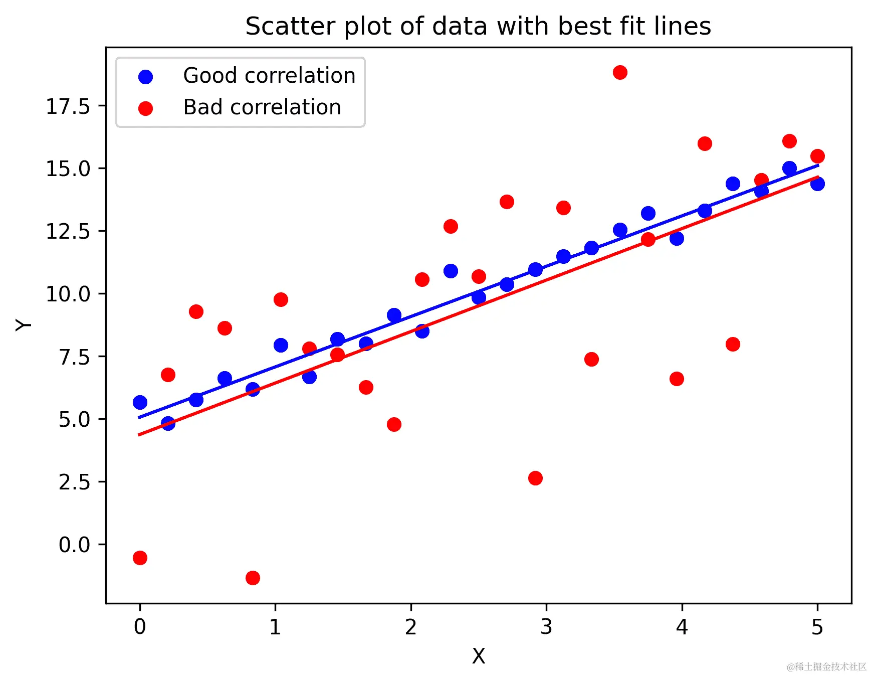 - 首先,我们生成一些示例数据进行分析。我们将生成两组数据,这将说明一个良好的拟合和一个不太好的拟合: