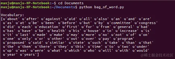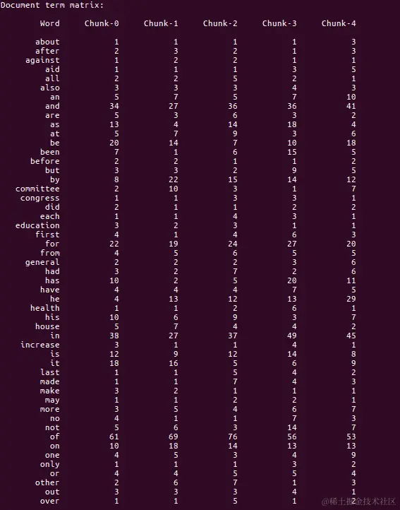 - 执行词袋模型后获得的结果如下所示: