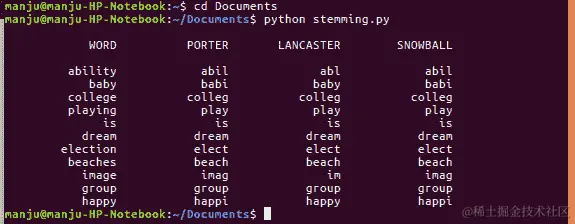 词干处理过程得到的结果如下截图所示: