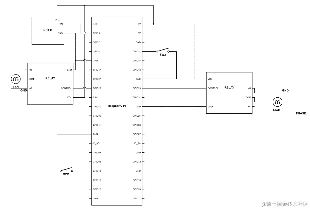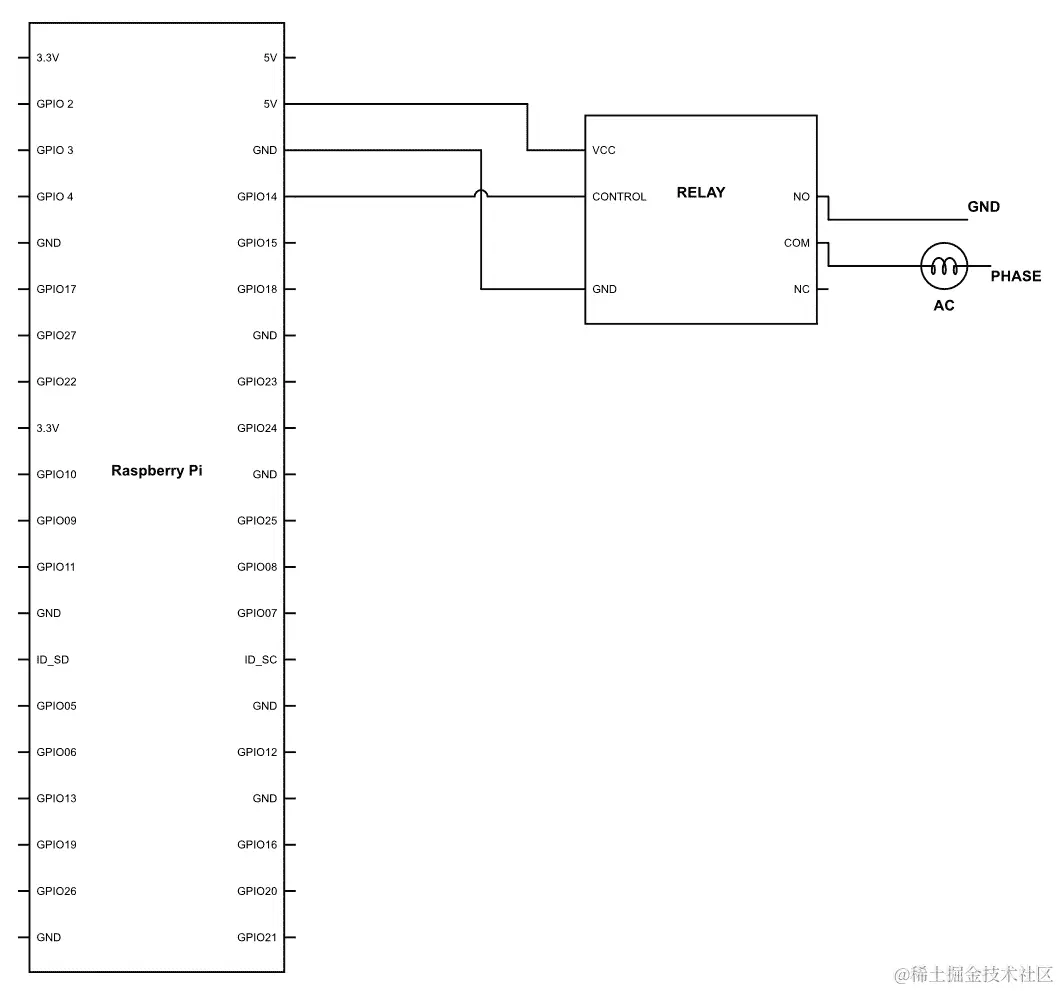 由于我们正在处理高电压和更高电流,我们将使用继电器。为此,请按以下方式连接电线: