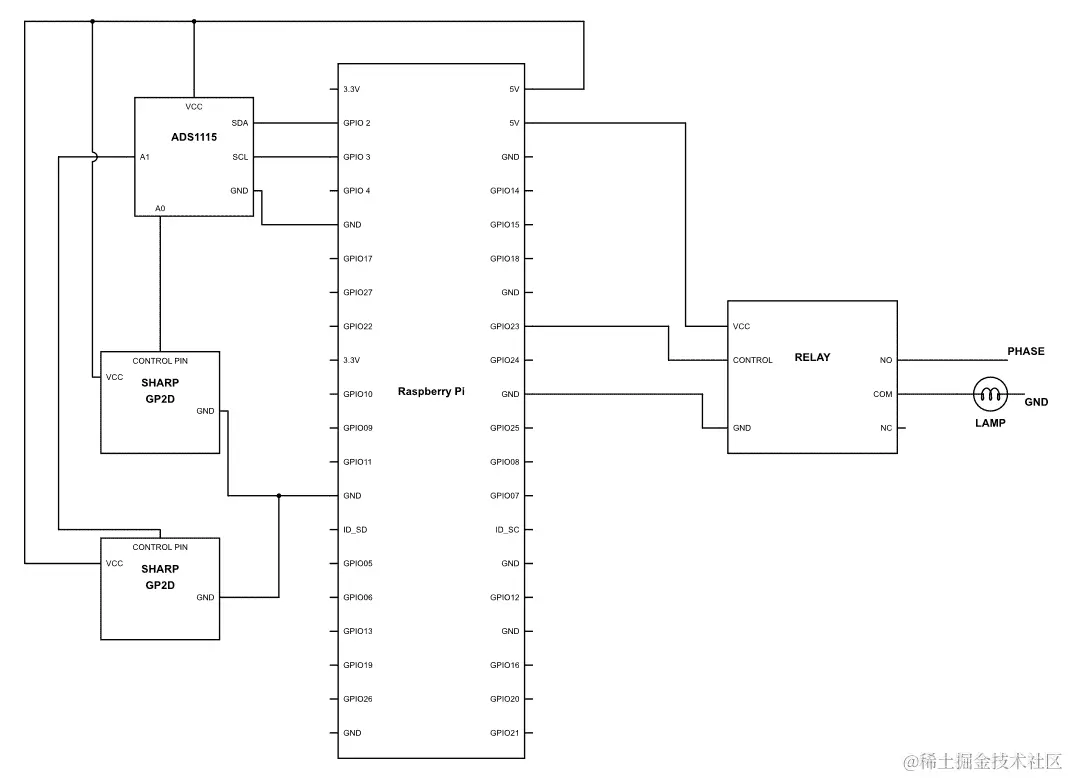 我们有一个解决方案!我们可以使用一种方法,确保您必须起床。为此,我们将使用我们之前在项目中使用过的红外近距传感器,并根据传感器的距离读数,我们可以检测您是否已经穿过了特定区域。这可能非常有趣,因为您可以将该传感器安装在床的另一侧,或者可能安装在浴室的门口,直到您穿过特定线路为止。系统不会关闭闹钟。所以让我们看看我们将如何做。首先,按照以下图表连接硬件: