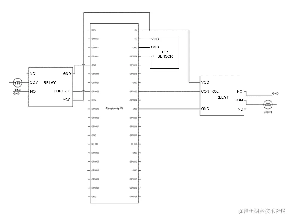 这一步对您来说并不那么困难,因为我们之前已经接口化了这个传感器。我们说的是老式的 PIR 传感器。因此,传感器将感知区域内的任何运动。如果有任何运动,那么贾维斯将打开灯光。我相信这是您现在可以自己做到的事情。您仍然可以参考这里的代码和电路图: