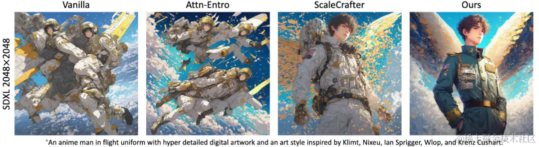 图 1 : 采用不同方法在 SDXL 1.0 下生成 2048×2048 图像的对比 。[1]