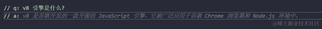 在下一行中输入 // a: , copilot 会提供最简短的回答内容。