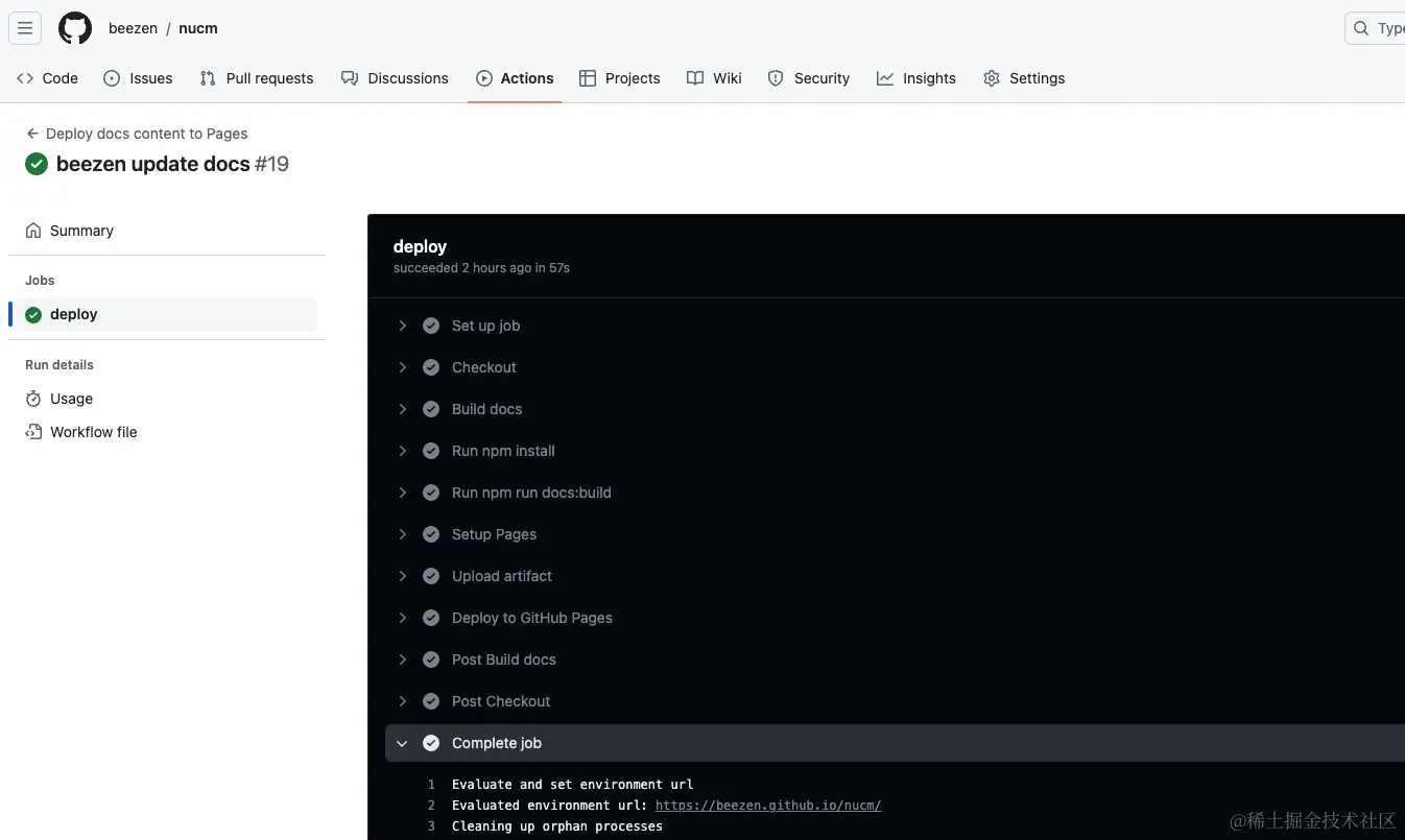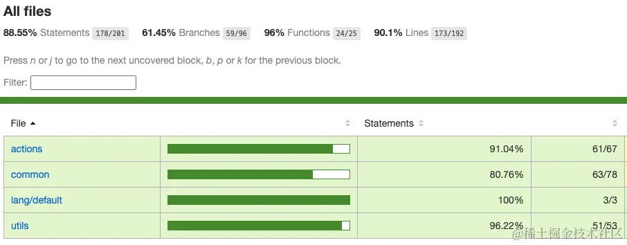 NUCM 开源项目的工程质量主要通过 Github Actions 工程化的手段进行保障。目前,我们主要采用两个动作来实现这一目标:一个是基于 VuePress 的文档自动发布流程,另一个是基于 Jest 的单元测试覆盖率统计。目前,我们的单元测试覆盖率已达 89%。